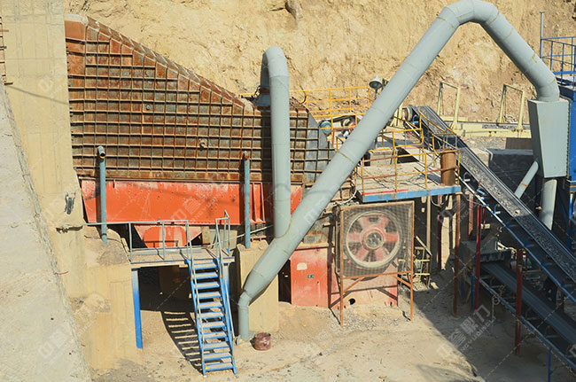 設備配置:PE750×1060顎破機+PF1315反擊破+4YK2460振動篩+配套設備。