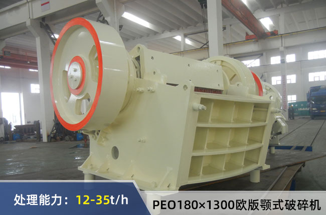 PEO180×1300歐版顎式破碎機屬于小型的,且進料粒度比較小,一般多用于二級破碎階段,直接生產30mm以下的骨料,如破碎原料不大于150mm,可直接采用該設備配上配套給料、篩分設備組建小型砂石生產線。