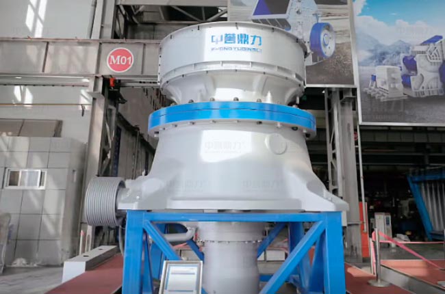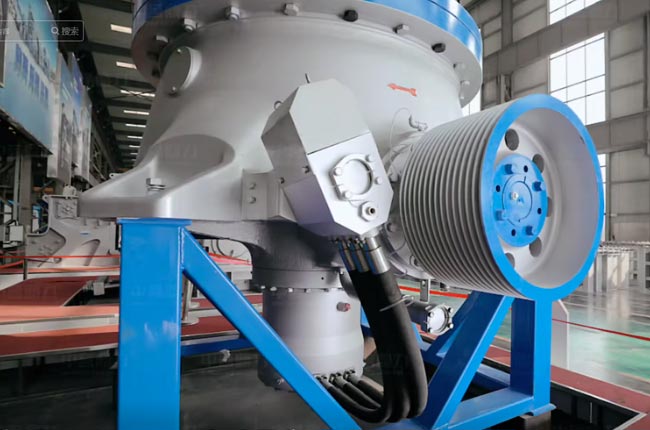出料大小是由動錐上下運動控制,由動錐底部的液壓缸控制調節,方便快捷,還具備過鐵保護,自動恢復功能,延長設備使用壽命,較大程度停機次數。