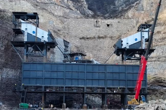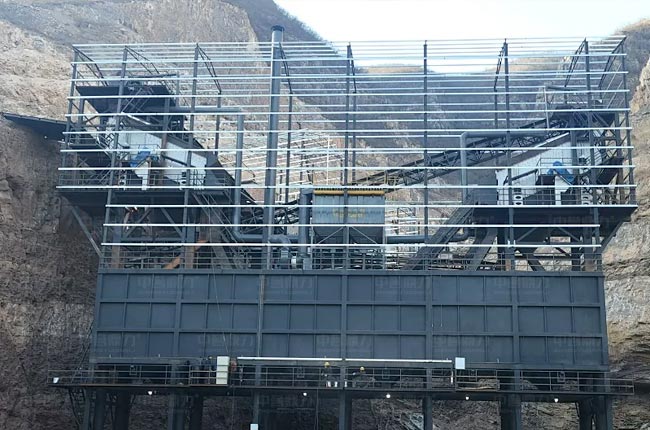 河北涉縣該項目立體式骨料生產(chǎn)線設(shè)計,具有生產(chǎn)結(jié)構(gòu)緊湊,場地優(yōu)化等特點。振動篩設(shè)備安裝于料倉頂部,大大節(jié)省安裝、輸送、結(jié)構(gòu)等成本。