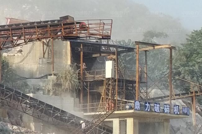 這個日產五千噸噸石料生產線2017年8月投產,破碎石灰巖物料,生產0-5、1-2、1-3等多種規格的碎石骨料,采用一次成型的PCZ1815重錘式破碎機配置方案。