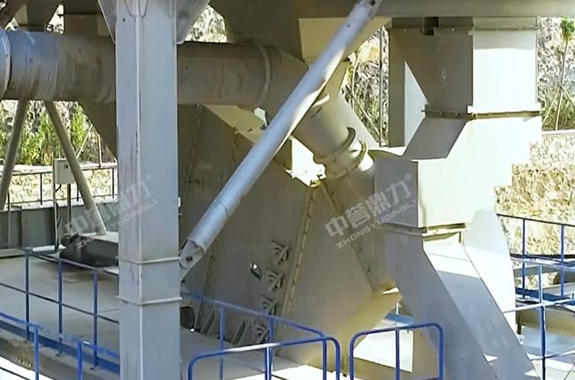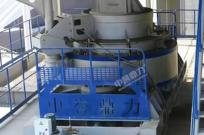 05料通過400提升機(jī)進(jìn)入封閉皮帶機(jī),進(jìn)入沖擊破整形制砂,然后進(jìn)入振動篩控制粒型,篩下料進(jìn)入閉路循環(huán)選粉系統(tǒng)(先進(jìn)靜態(tài)選粉機(jī)再進(jìn)動態(tài)選粉機(jī)),篩上料通過提升機(jī)再次返回制砂機(jī)成型制砂。