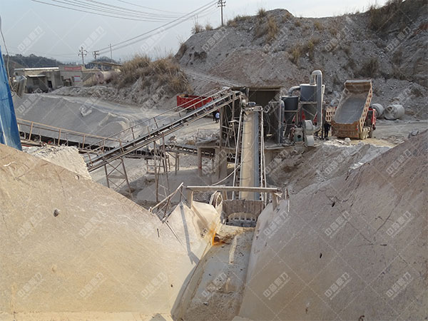 先,砂石料由震動喂料機均勻地送入顎破機進行初級破碎,初級破碎后的物料送入到沖擊石子機制砂深度破碎,整型破碎后的物料被傳送到篩分機進行篩選分級,達到成品粒 度要求的物料被送入洗石機清洗,清洗后由成品傳送帶輸出即為成品;未達到成品規格要求的物料從篩分機返回制砂機械再次處理,形成閉路無數次循環,成品規格可按用戶的需求進行組成以及分級,如果運用干法生產技術,可配備粗細粉分離機以及防塵設備。